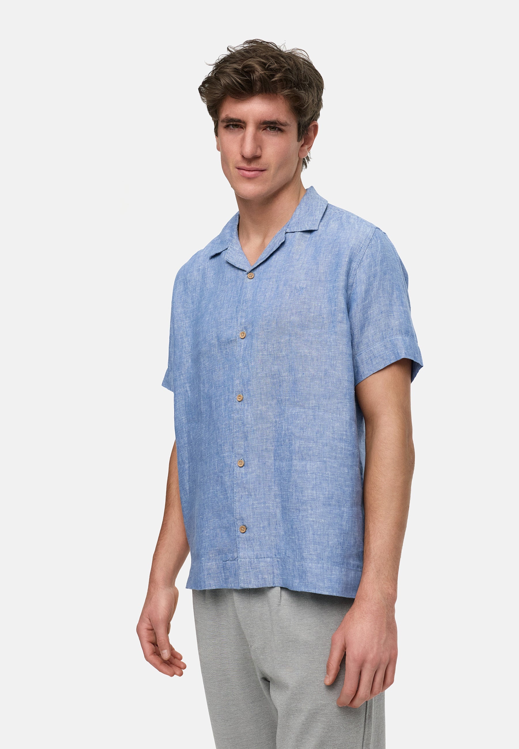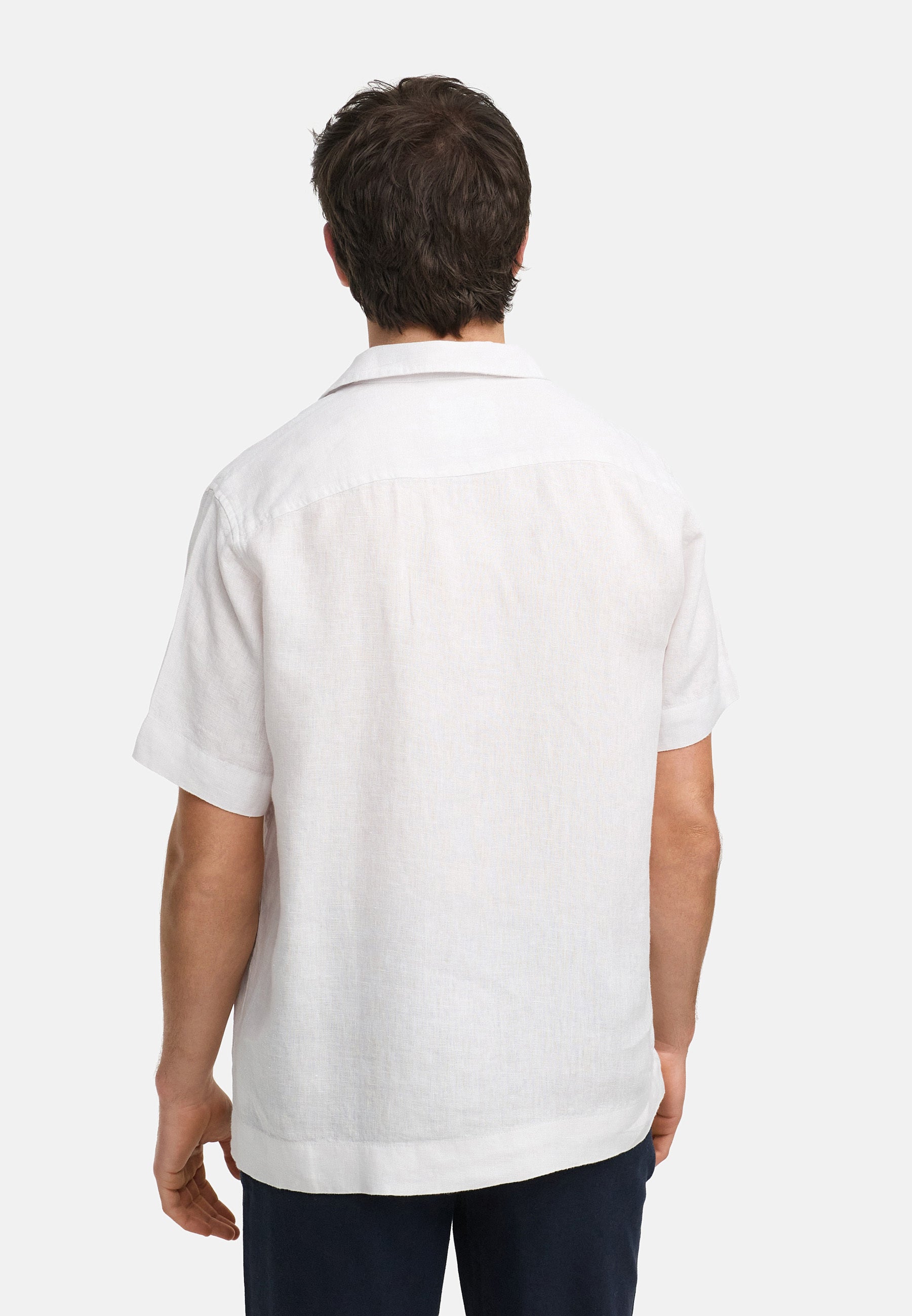 This short-sleeved shirt impresses with its timeless cut and stylish, understated look – perfect for warm days and casual occasions. With its classic lapel collar and full-length button placket, it can be easily combined with a variety of outfits – whether with jeans, chinos, or shorts. The shirt is made of 100% linen, which gives it a natural texture and a pleasant, airy feel. Linen is known for its excellent breathability and temperature-regulating properties – ideal for hot summer days. At the same time, it gives the shirt a sophisticated, slightly structured look that is perfect for everyday wear and vacation. A versatile garment that skilfully combines comfort and style and is distinguished by its natural character and high-quality workmanship.