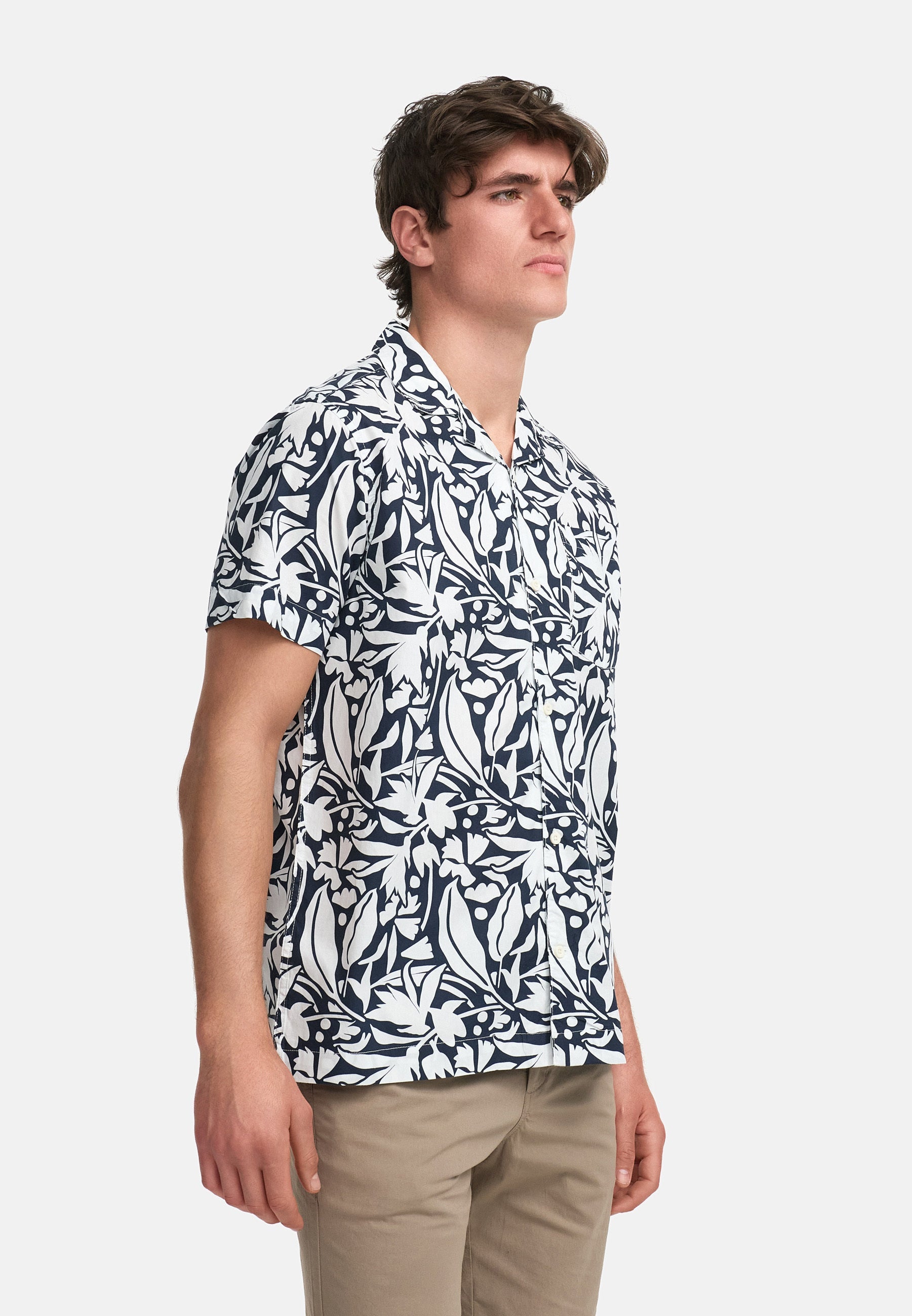 This stylish poplin short-sleeved shirt impresses with its striking all-over pattern and classic silhouette with a lapel collar and button placket – ideal for a fashionable, casual summer look. Whether with chinos, shorts, or jeans, the shirt can be combined in a variety of ways and adds a fresh, summery touch to any outfit. Made from 100% cotton, it offers optimal comfort even on warm days. Cotton is particularly skin-friendly, breathable, and moisture-regulating, ensuring a pleasantly dry body feeling. The fabric is also easy-care, durable, and impresses with its natural softness – ideal for everyday wear. A versatile shirt that combines functionality and fashionable design – perfect for vacation, leisure, or summer city looks.