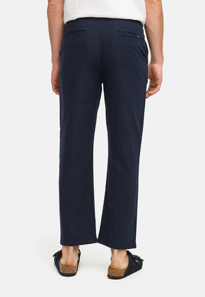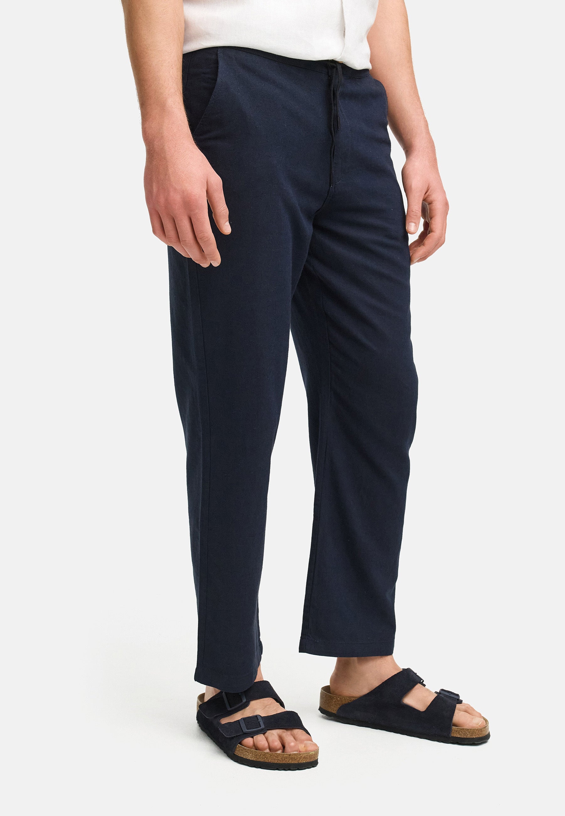 Thanks to the side pockets and discreet back pockets, the model is also functional for everyday wear. These trousers are ideal for anyone who values comfort, quality, and a timeless look.
