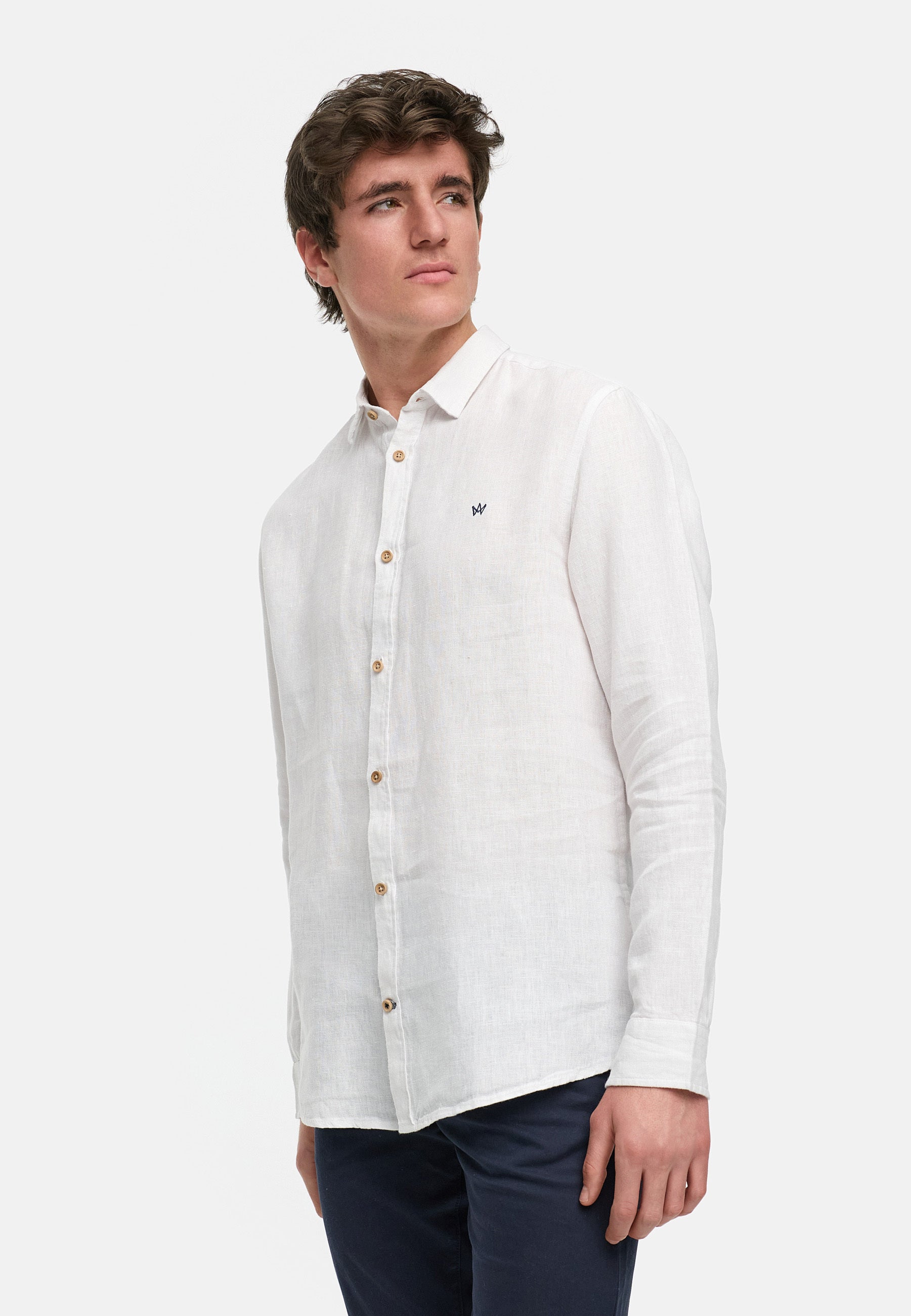 This long-sleeved shirt combines classic style with modern comfort. The straight cut creates a timeless silhouette that's perfect for everyday wear and special occasions. Crafted from a comfortable, textured fabric, it offers a high-quality feel and a sophisticated appearance. The full-length button placket and classic collar underline the elegant look, while the buttoned cuffs offer additional adjustability.