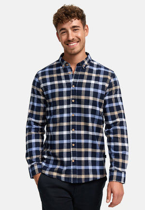 The classic check pattern gives the shirt a timeless look. A full-length button placket and a button-down collar complete the design.